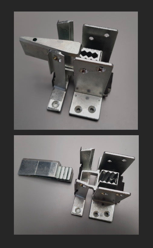 Das ist die Variante CST 1599 V2 passend zu Gealan Pfosten Serie 9000. Der besondere ist die aufgesteckte Nase entweder passend zu schräger Außenansicht oder der geraden Version. An der Nase sind seitliche Schabriefen angebracht, so das die Nasen stabil in den Stahl eingeschlagen werden können. Sie erhalten einen hochgradig verwindungssteifen Verbinder. Im zweiten Bild sehen Sie den gleichen Verbinder, jedoch ohne Nase.